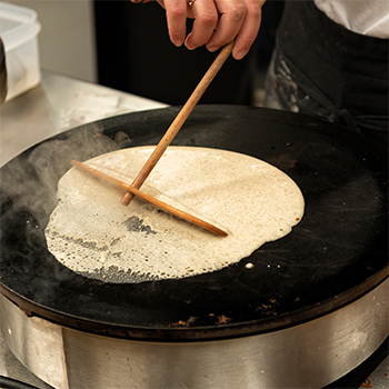 Notre crêpière professionnelle accompagne les groupes autour des billigs / galetiers. Vous découvrirez le tour de main pour réaliser de belles galettes bretonnes et de délicieuses crêpes !